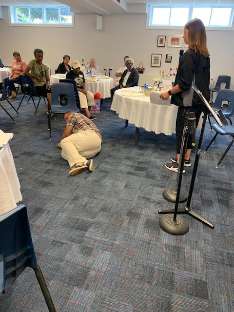 On Sunday August 21, 2022 the Seniors Ministry held its second event with Personal Trainer Amanda Cameron who demonstrated to the seniors how to get up safely should they fall down.